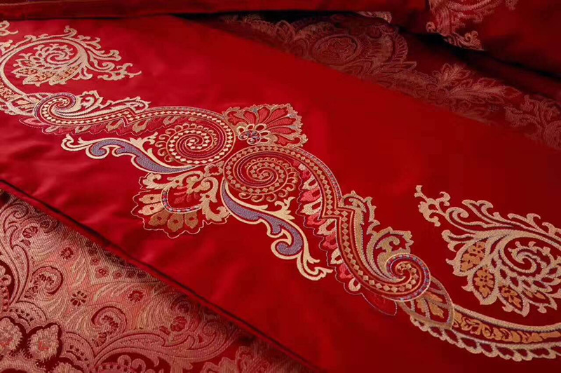 品名:天賜良緣 此款面料是織錦緞中的臻萃典范,經向緯向的色線絢麗,色彩斑斕,色澤光亮,手感和視覺的沖擊力度很大,浪漫的歐式卷草紋和唯美的佩茲利圖案搖曳生姿,美輪美奐,舞蹈出瑰麗的華爾茲!此款床品猶如重金打造的鉆石一般,高端、奢華、華麗!適合婚慶、居家、喬遷、饋贈的至高選擇!